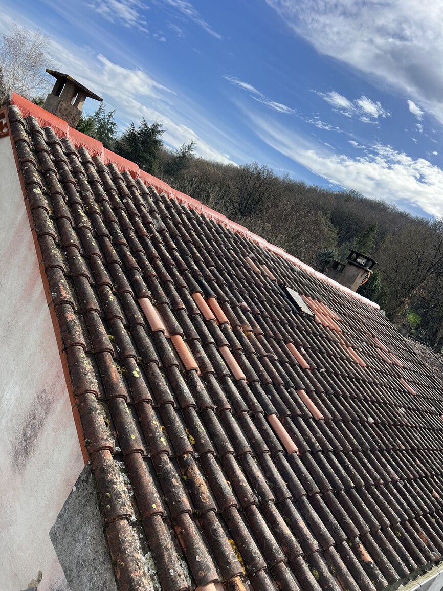Reprise d’un faîtage à sec, puis application, peinture, traitement d'étanchéité et hydrofuge