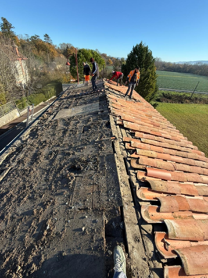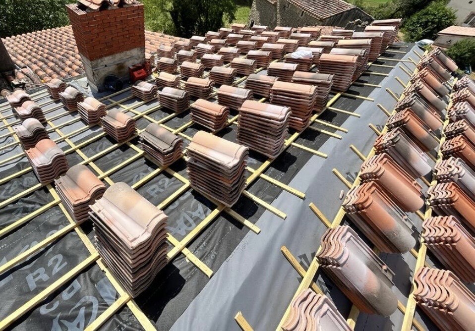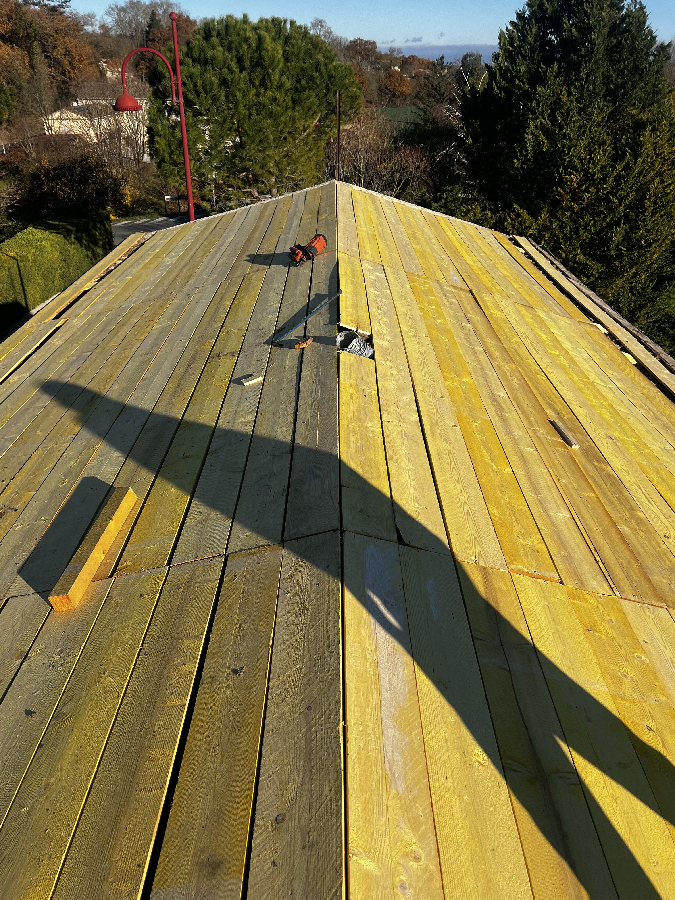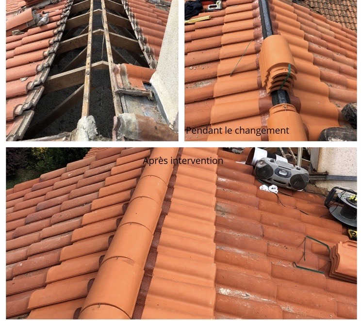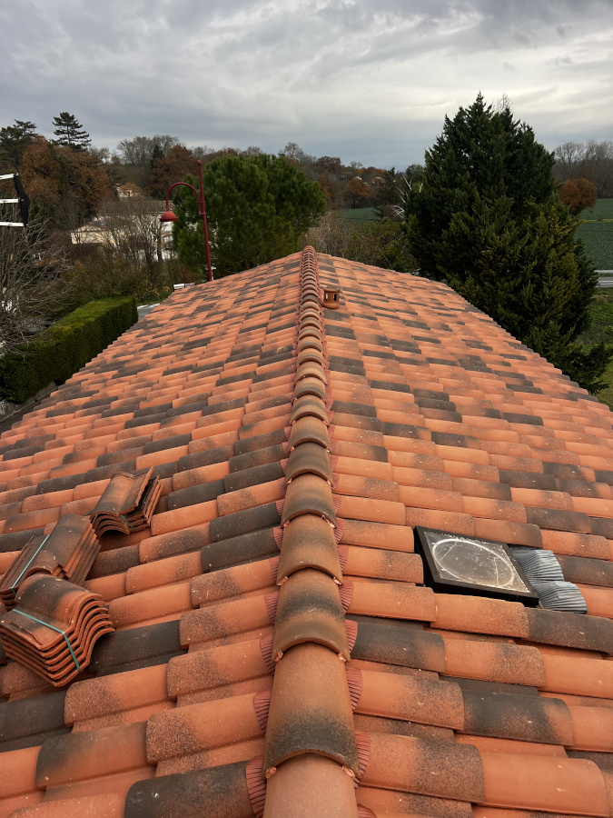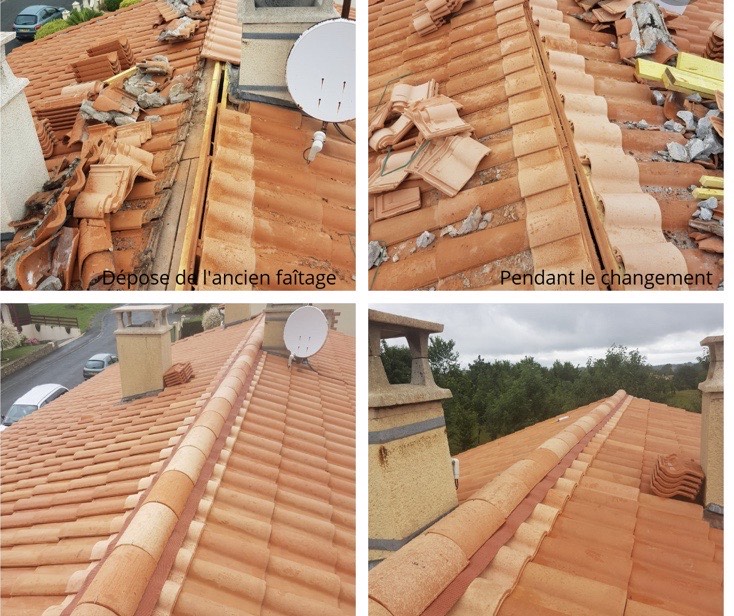 Reprise d’un faîtage à sec, puis application, peinture, traitement d'étanchéité et hydrofuge