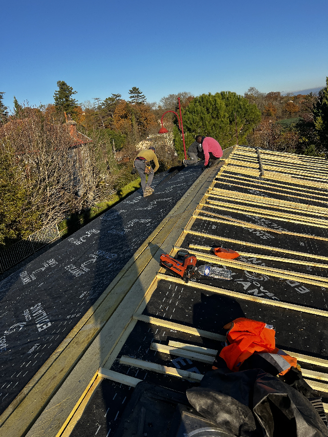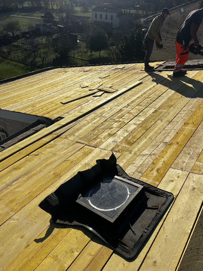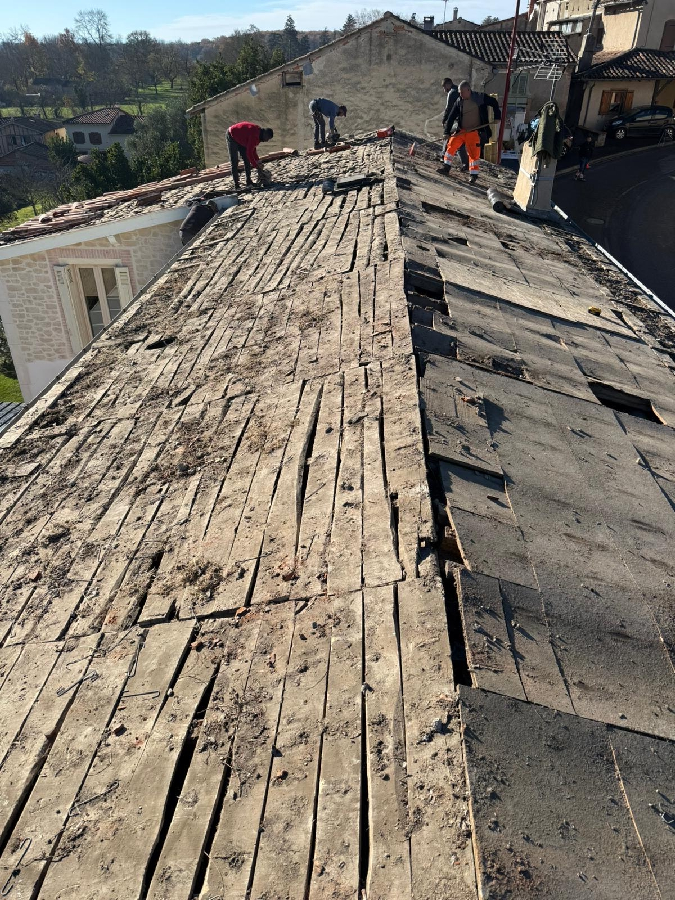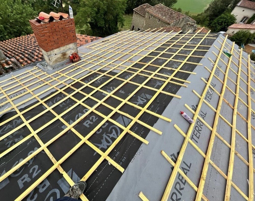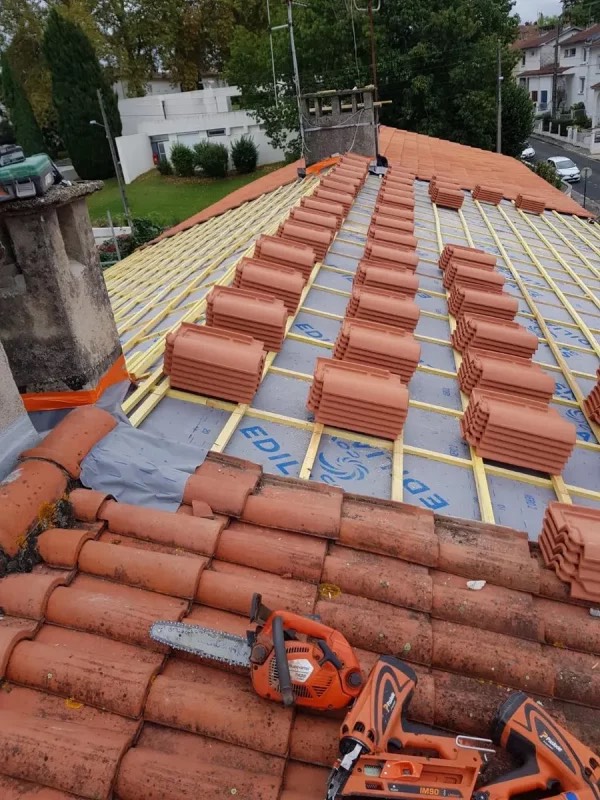 Reprise d’un faîtage à sec, puis application, peinture, traitement d'étanchéité et hydrofuge